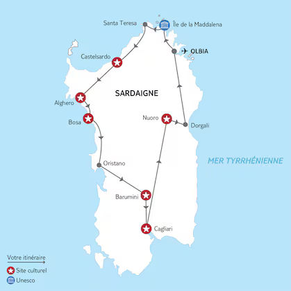 Dans l’après-midi, départ pour Barumini. La ville est réputée pour son grand complexe nuragique, le Su Nuraxi, dont les vestiges remontent à l’âge du bronze. Ceux-ci représentent l’expression architecturale la plus significative de la civilisation nuragique dans l’île. Poursuite pour Cagliari.